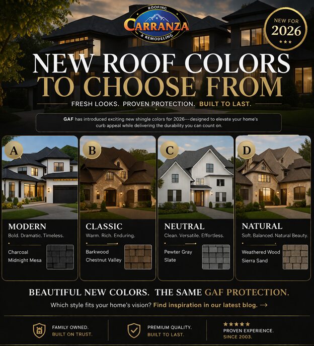 If you want a recommendation tailored specifically to your home, Carranza Roofing & Siding can help you choose the perfect color with confidence.
